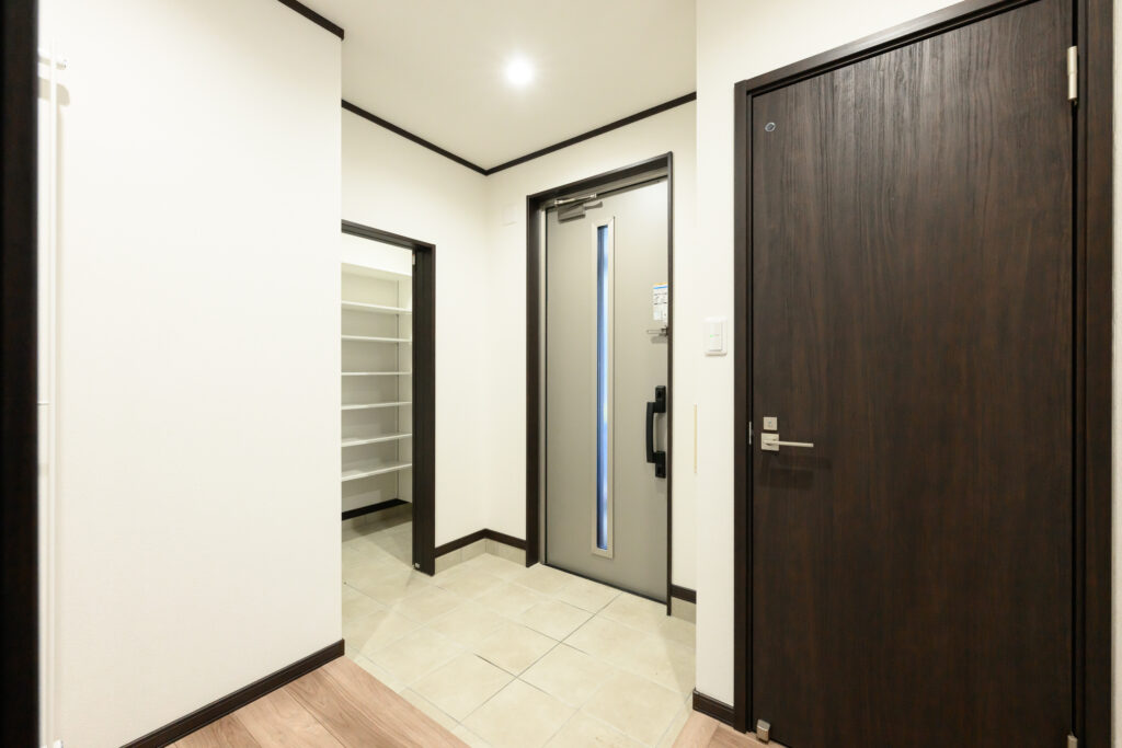 ガスマイホーム発電コレモ省エネ住宅 カーテンン・風除室・物置完備