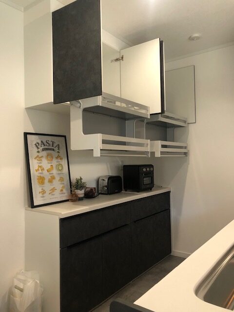 ダウンウォールキャビネットは高い所の収納も楽々です♪